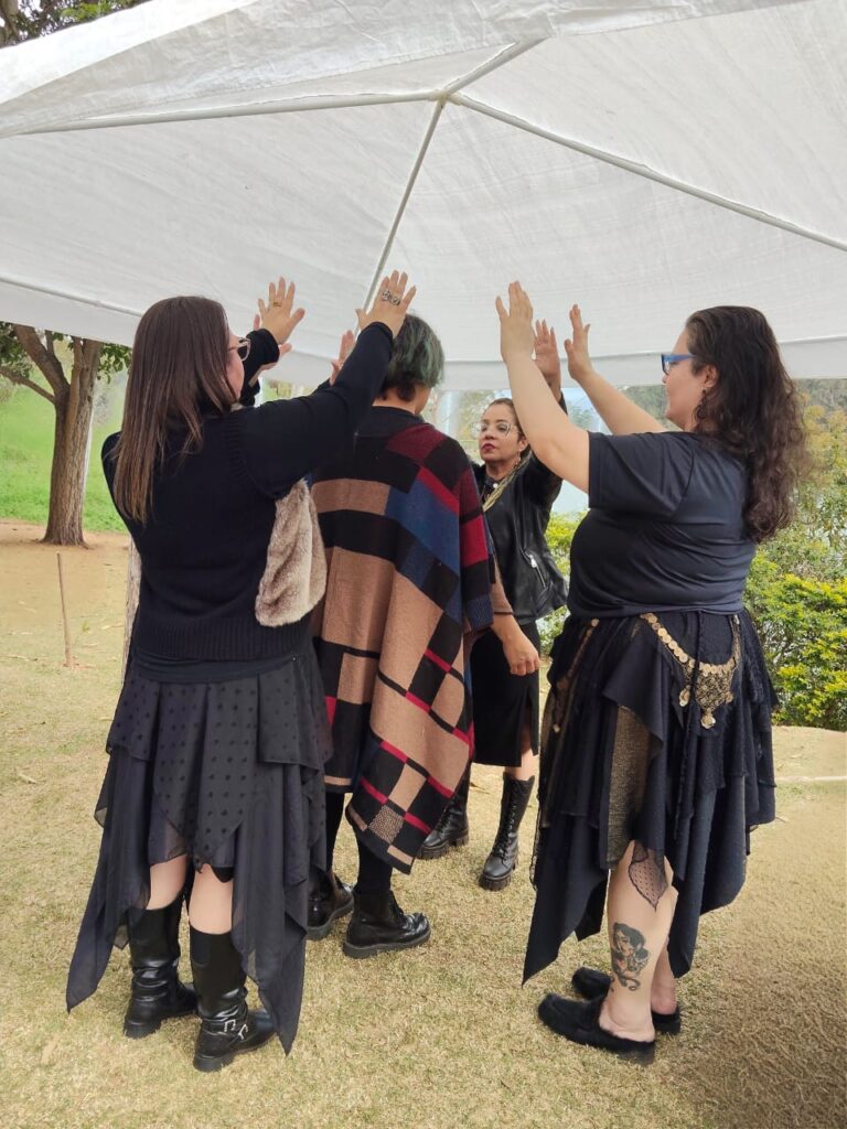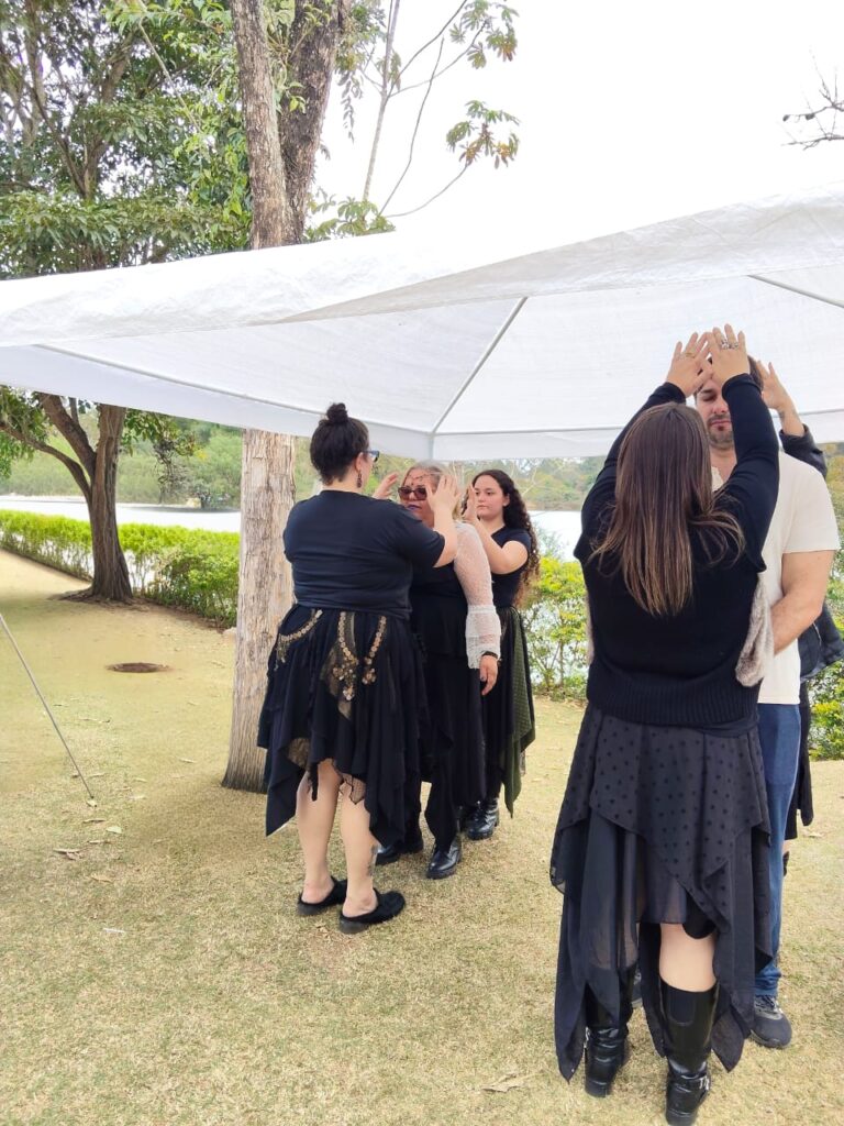 Durante o evento, oferecemos atendimentos com bênçãos e alinhamento energético, além de consultas com os oráculos das bruxas, como o Tarô e as Runas das Bruxas.